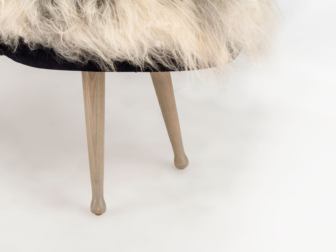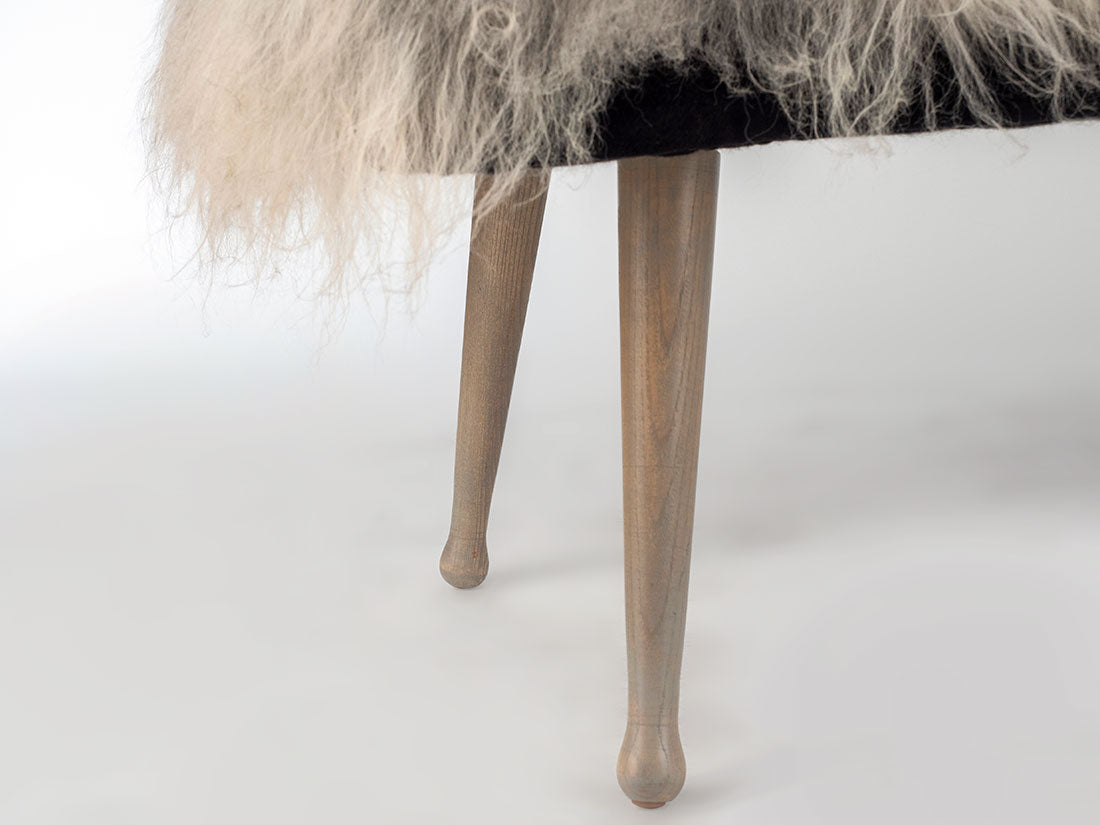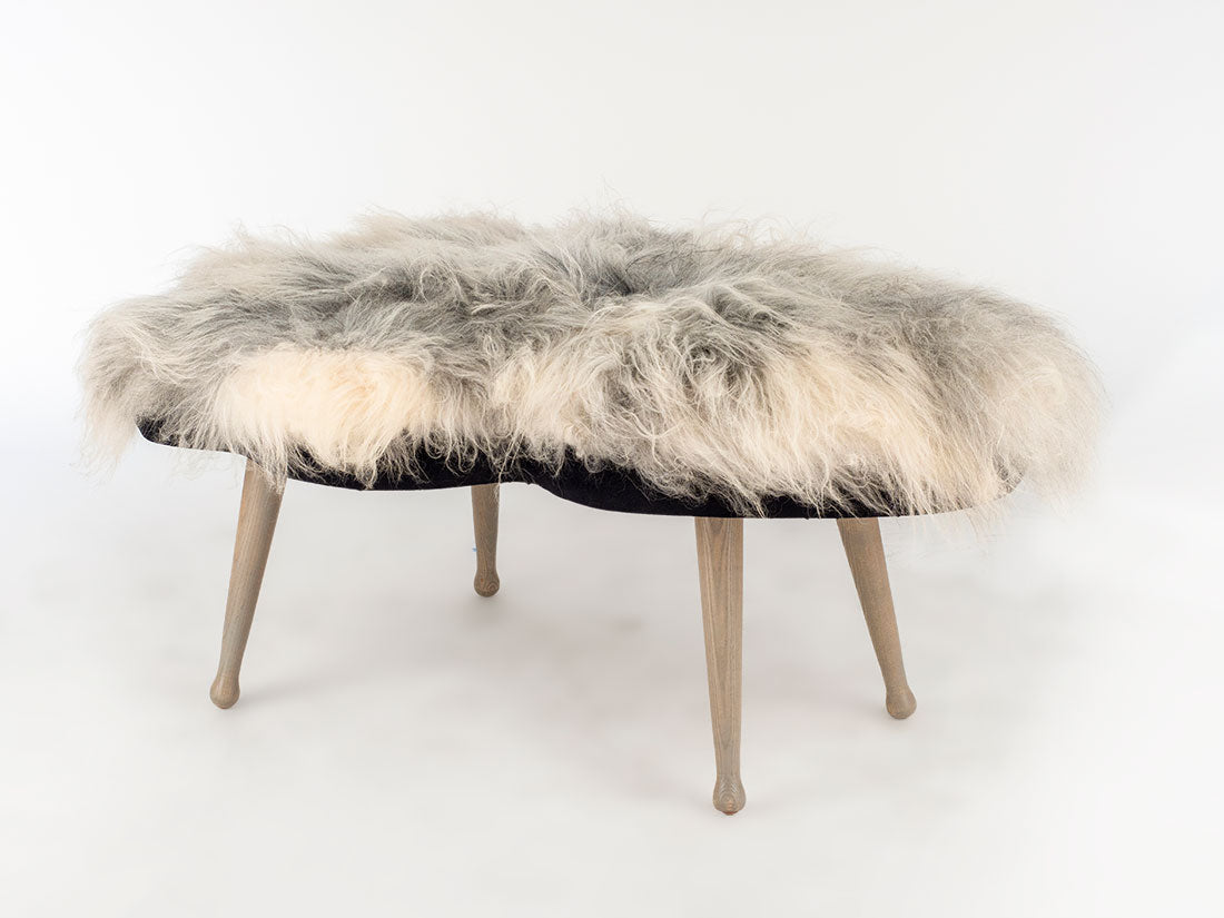 Introducing the Freeform Icelandic Bench (featured in Grey and White), a one-of-a-kind creation that echoes the organic beauty of rare grey and white Icelandic sheepskin (cruelty free).