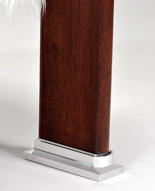 With beauty and function in mind, the upholstery for this modern classic style is a soft, but durable, Mongolian woven fur that compliments the steam bent solid American Walnut arms. The polished aluminum feet add a distinct finish to the look.