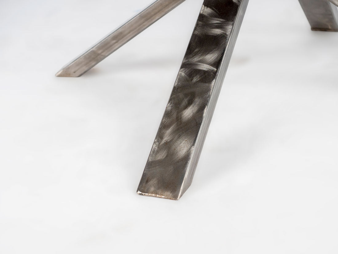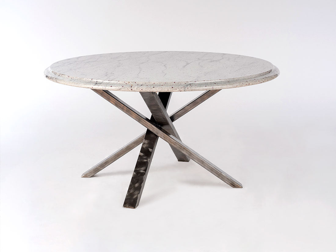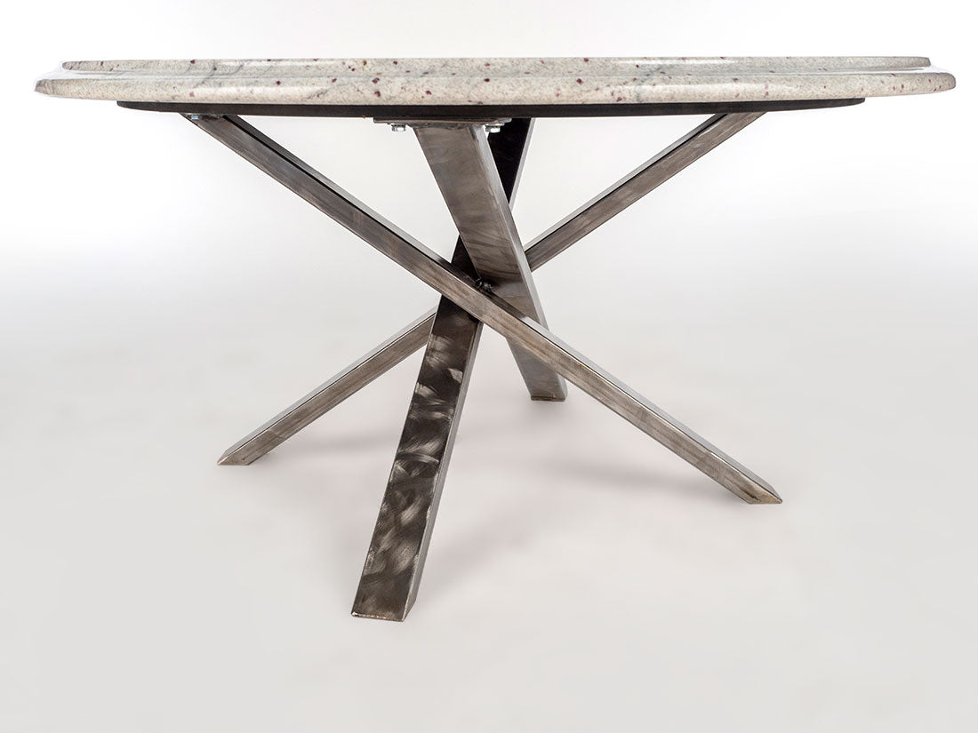 The heavy gauge, hand-ground rectangular steel tubing cross base of the Round Granite Table w/ Cross Base adds an industrial touch, expertly coated in a high gloss finish. It's a harmonious blend of contemporary design and enduring craftsmanship.