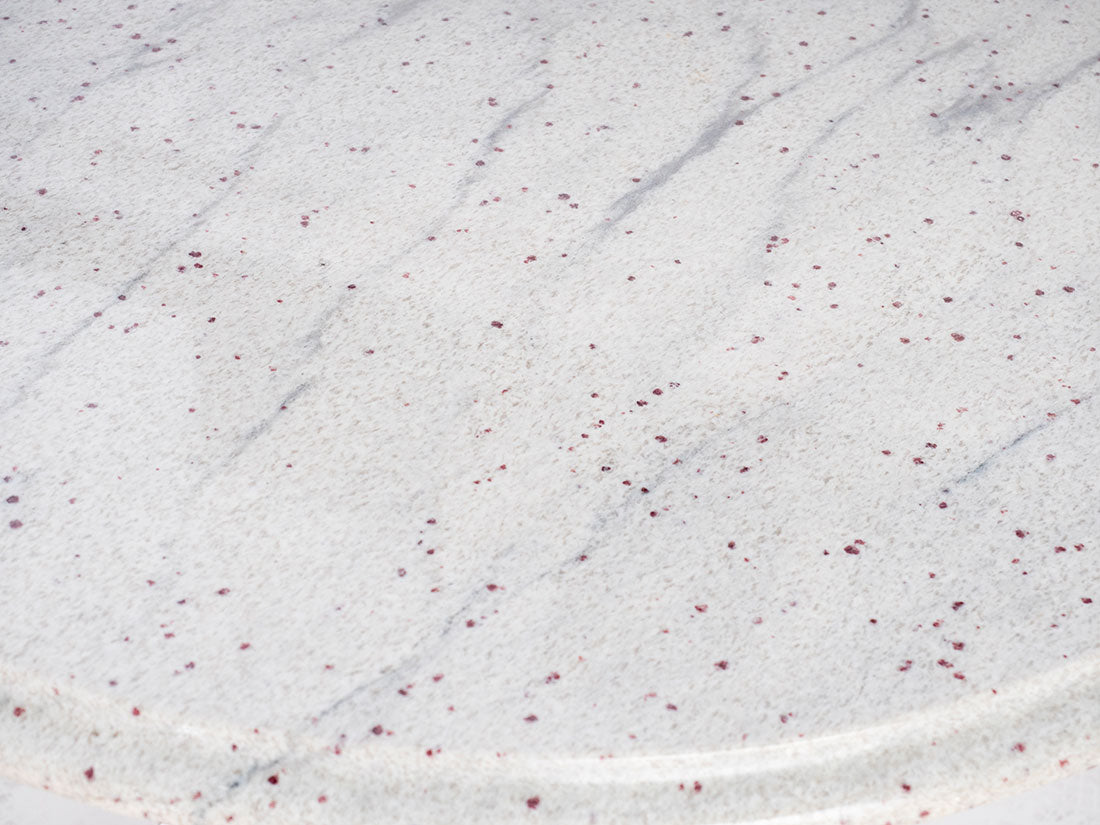 Introducing our modern marvel, the Round Granite Table w/ Cross Base, destined to transform your living area. Crafted for both style and durability, this coffee table boasts a captivating white, speckled granite top that's as elegant as it is robust.